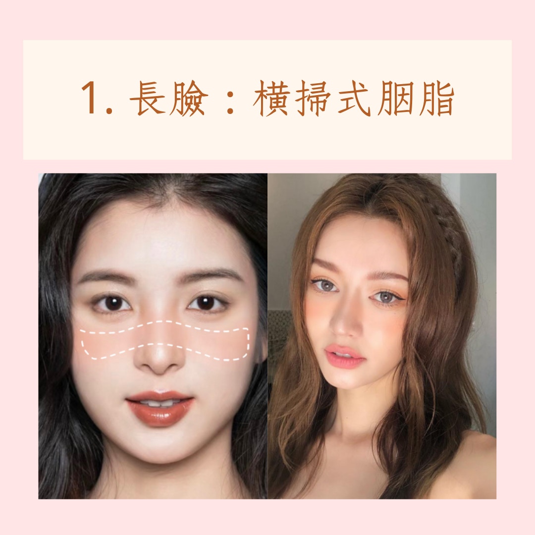 1. 長臉:橫掃式胭脂