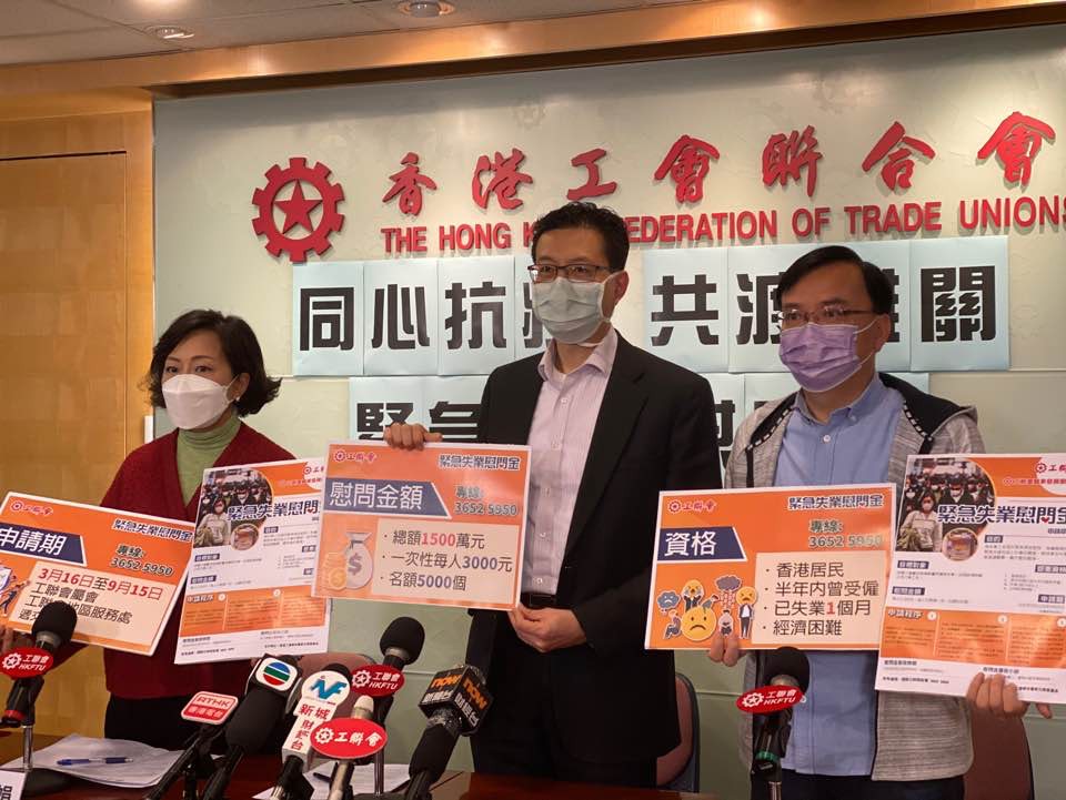 【新冠肺炎】工聯會設緊急失業慰問金每人3千 料五千人受惠