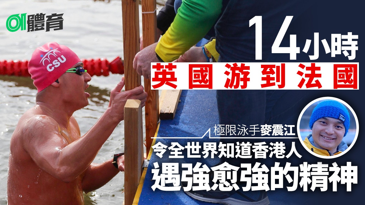香港冰水游泳選手麥震江,花約14小時泳渡英倫海峽,在昨日下午游抵法國海岸,成為香港第一人。
