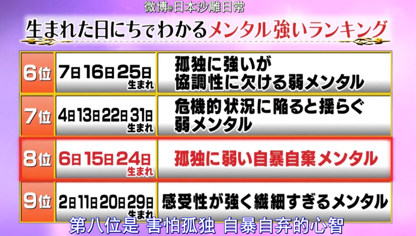 每周的快樂源泉《月曜夜未央》又出排行榜了,這次是根據生日來判斷人的性格排行榜。這個主題特別吸引報姐,想對應下自己的出生日期到底看準不準。
