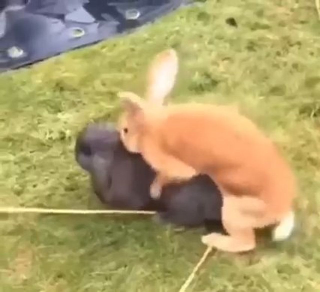 「5秒後發射!」從Facebook社團影片可以看到,畫面中的橘兔和灰兔正在進行交配,其中位在上方的橘兔出現跨騎行為,連結的過程中臀部宛如電動摩打狂震,在短短幾秒內就瞬間完事,隨即四肢及耳朵都不聽使喚倒在地上。
