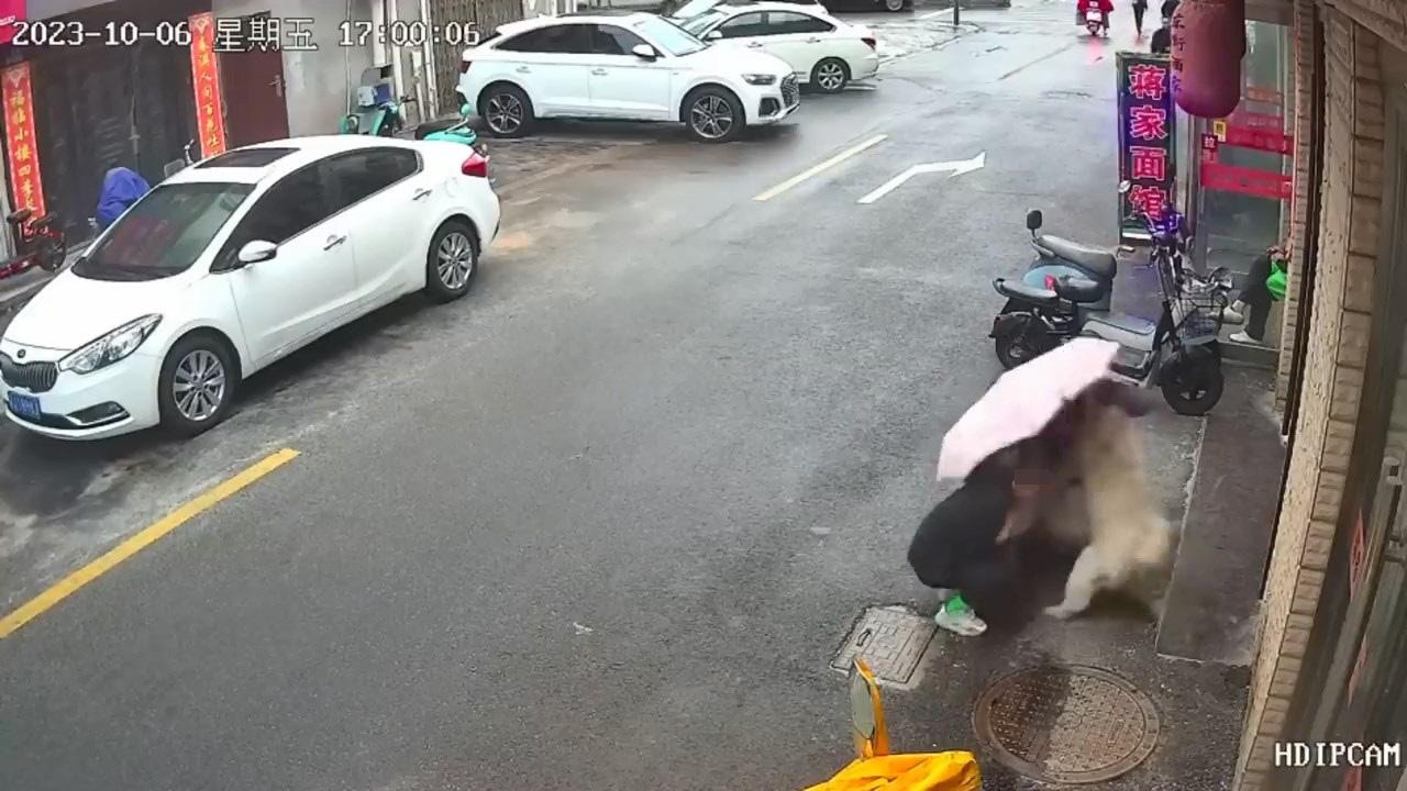 綜合內地媒體報道,事發10月6日,地點在江蘇鹽城。從網上流傳約2分鐘閉路電視(CCTV)影片見到,撐着雨傘的長裙女子,與女兒在道街行走時見到有狗狗獨自坐在路邊,於是走近狗狗蹲下伸手撫摸頭部,女兒亦蹲在旁邊觀看及伸手撫摸狗狗。