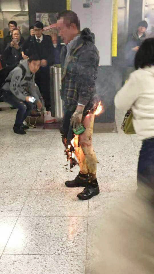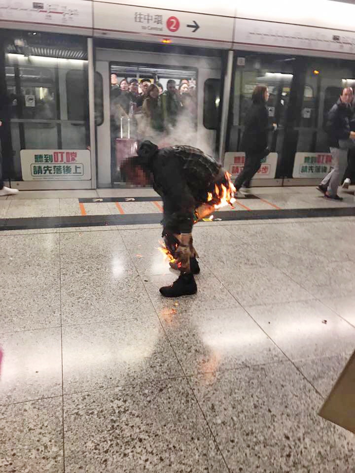 【港鐵烈火・有片】男子下半身著火儼如火球 乘客上前撲救