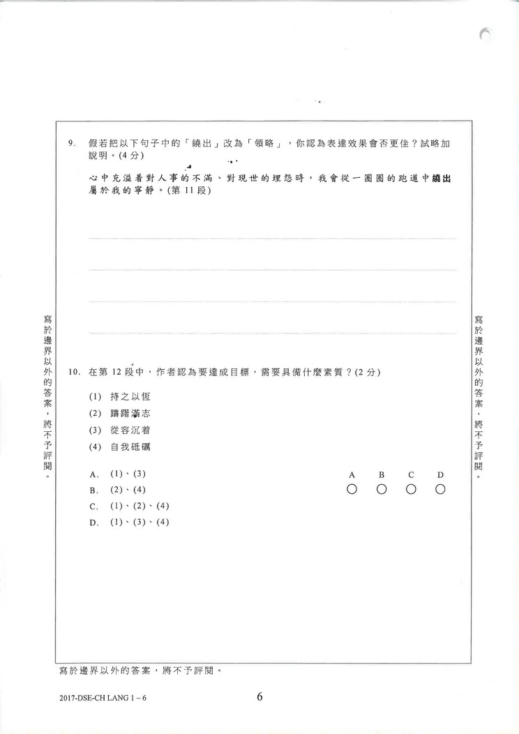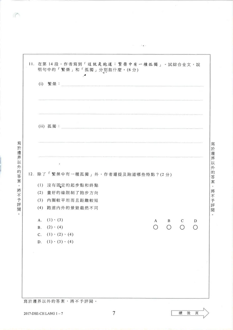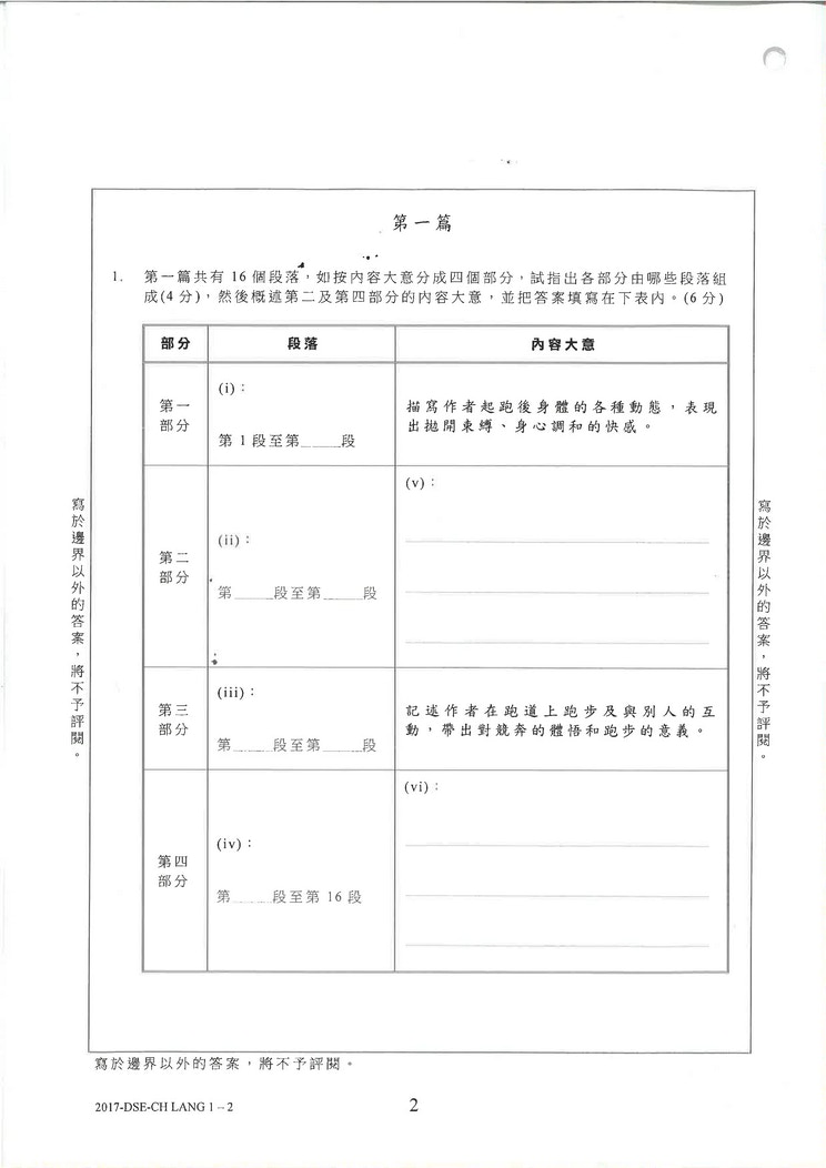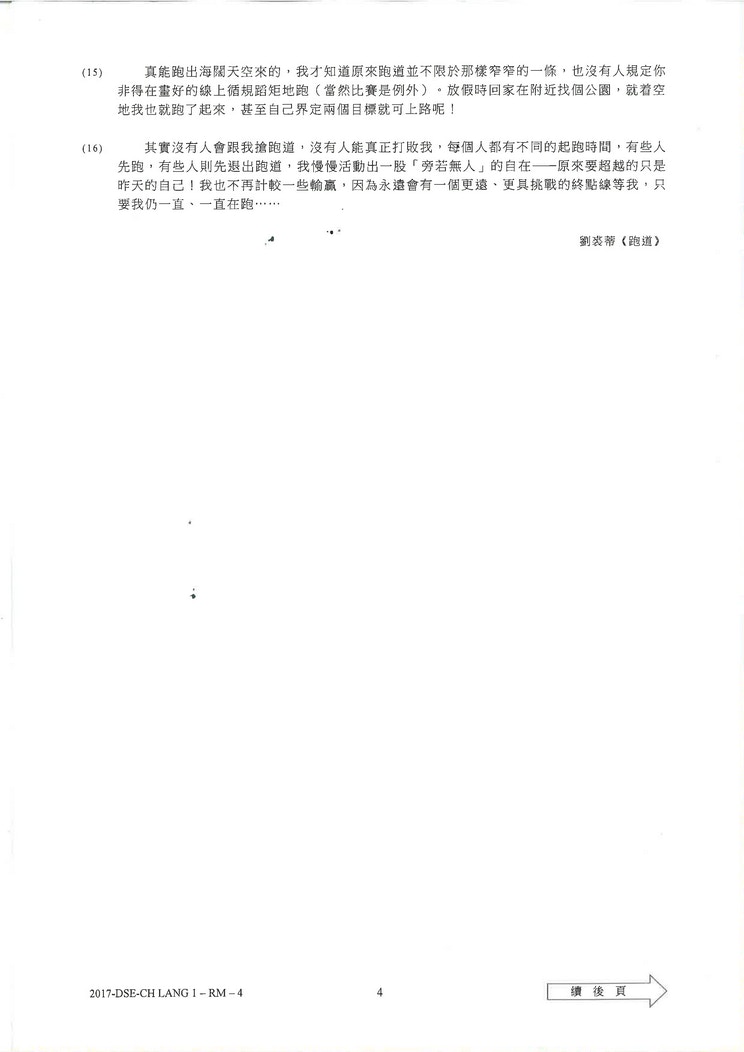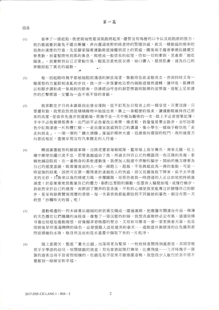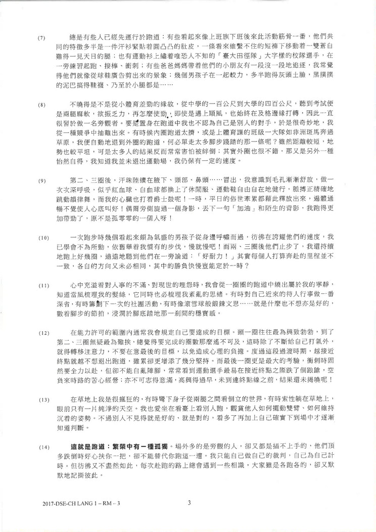 【DSE】中文閱讀理解引台灣文章《跑道》 學生:文章長未能完卷
