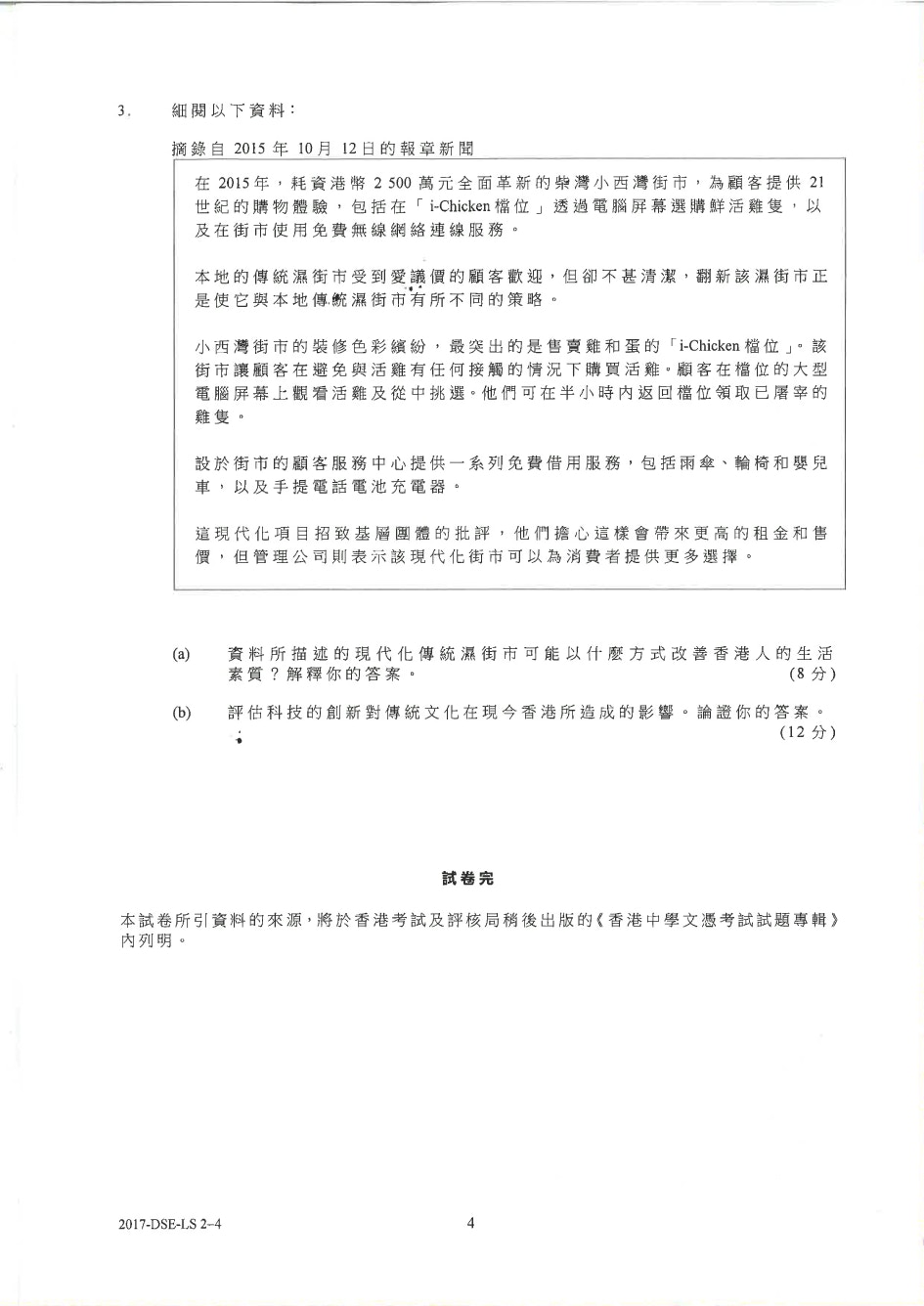 【DSE】通識卷二選答 問全球化工業、電子煙、傳統濕街市轉型