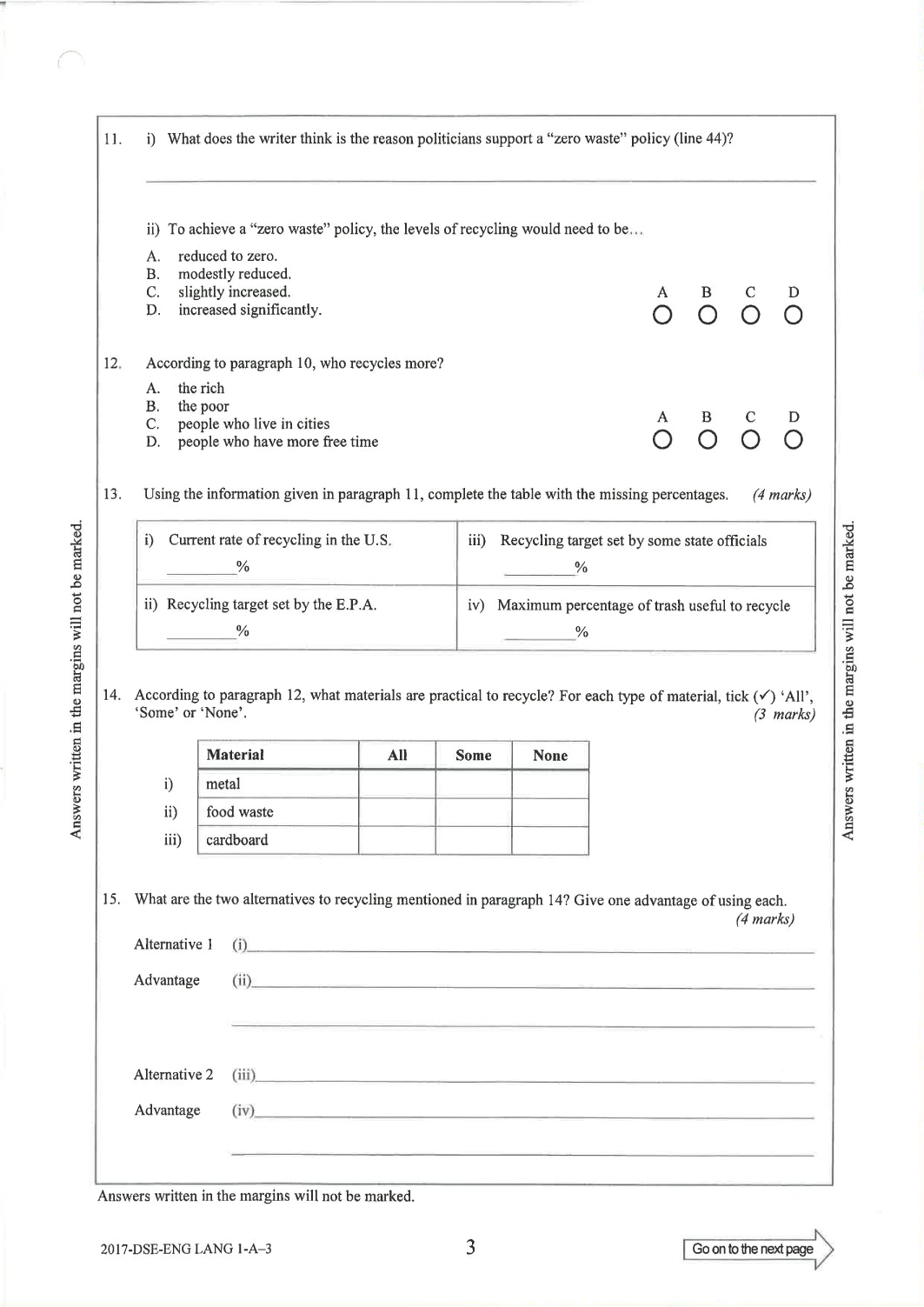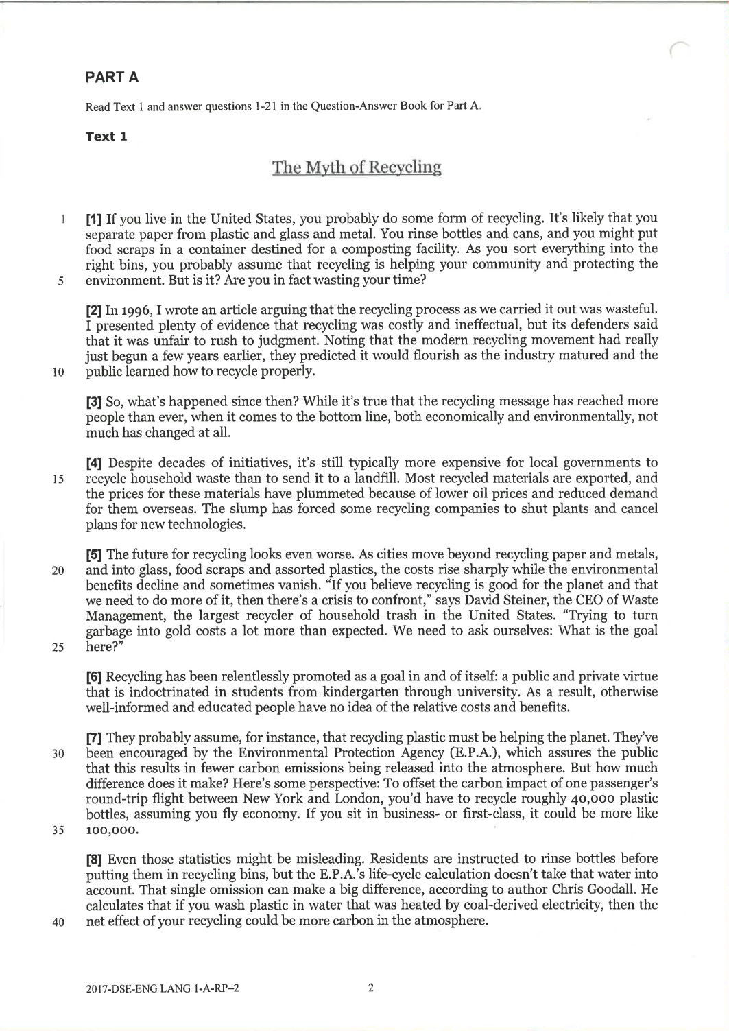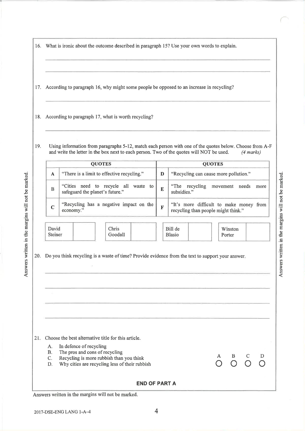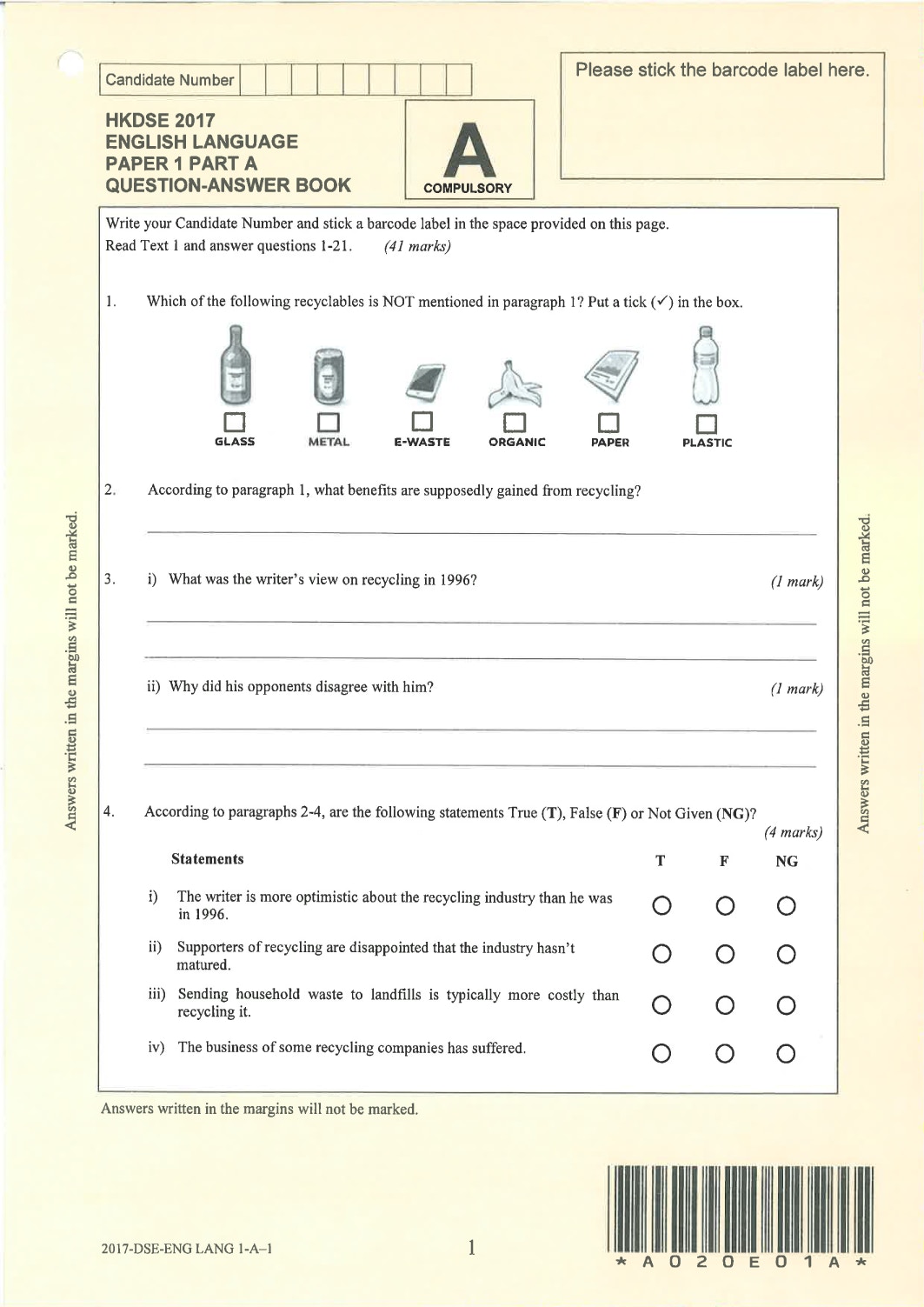 英文科Paper 1(閱讀理解)Part A Question-Answer Book