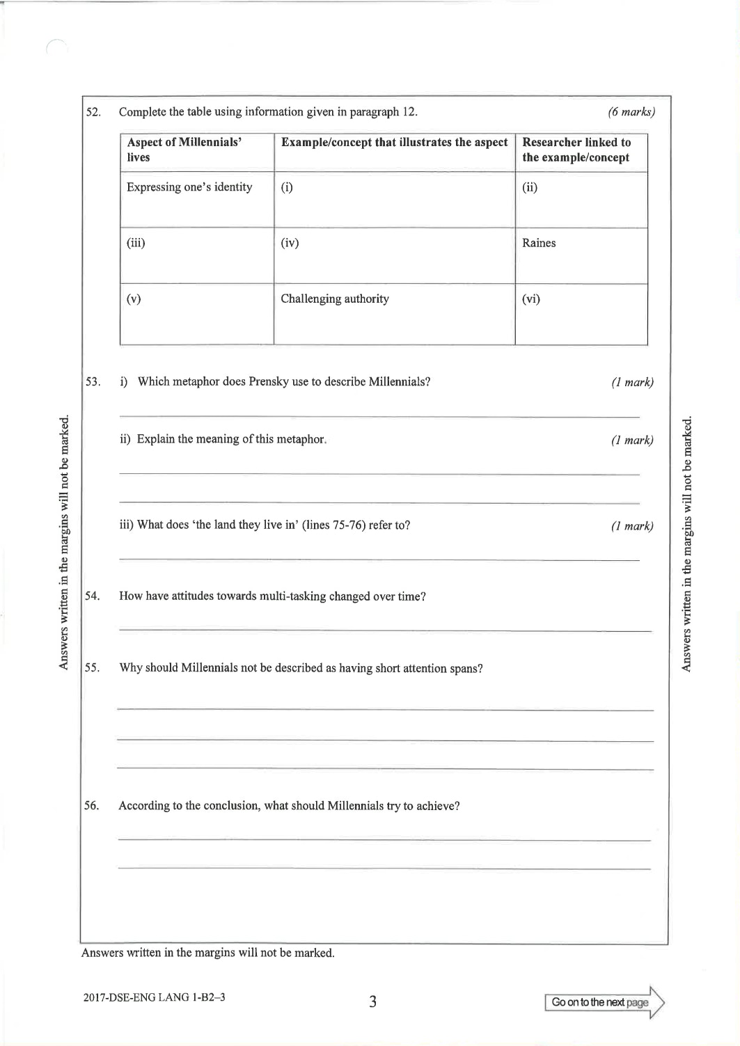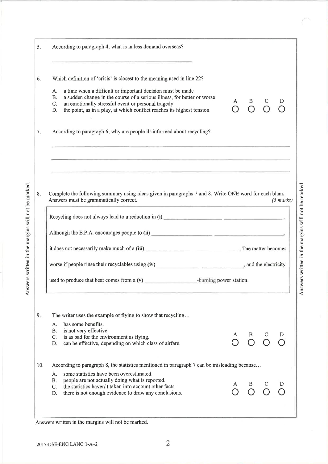英文科Paper 1(閱讀理解)Part B2 Question-Answer Book