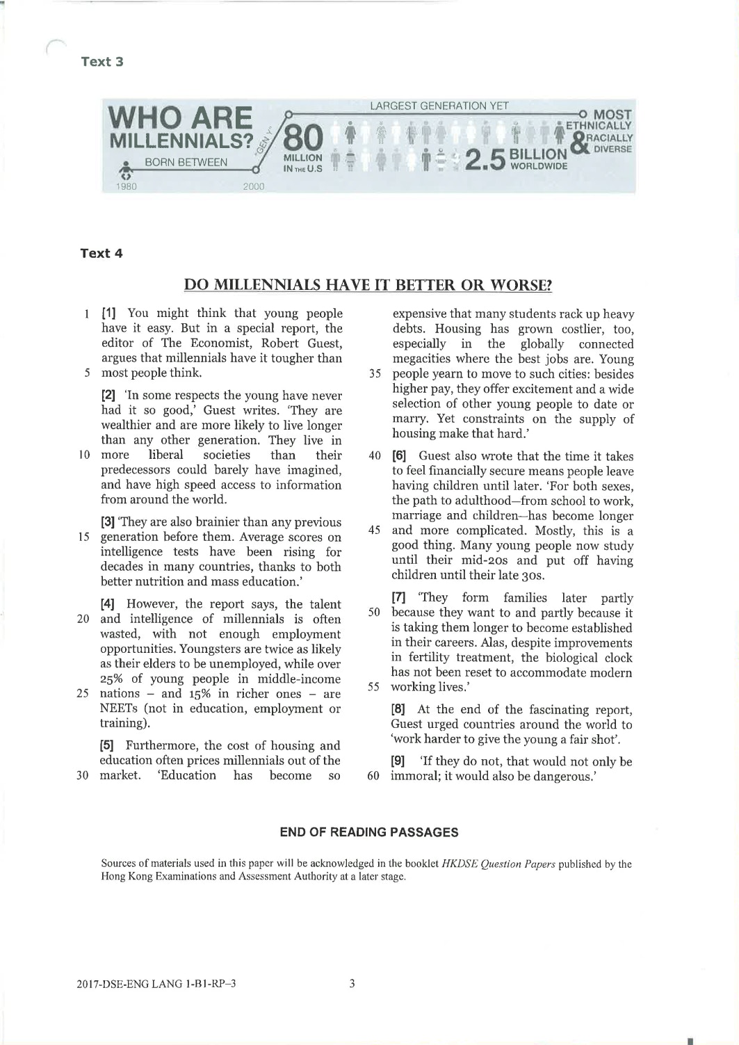【DSE】英文老師指閱讀卷談千禧世代 主題 「共鳴感強兼貼地」