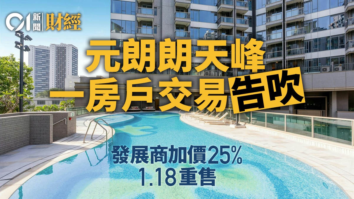 元朗朗天峰一房戶交易告吹 發展商加價25%周日重售